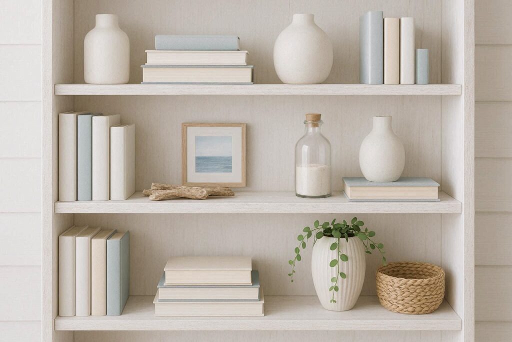 Idea 19: Coastal Bookshelf Styling — Form Meets Function