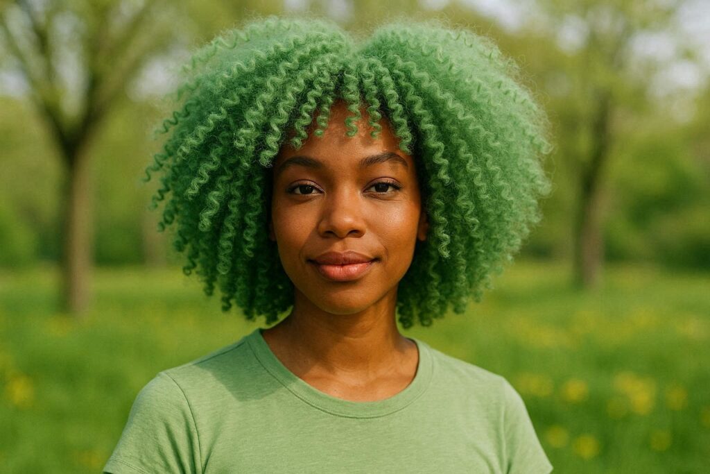 On a crochet curl texture that mimics natural coils or waves, the green color creates a look that is simultaneously playful and surprisingly wearable — particularly against deeper skin tones where the contrast is vivid and beautiful.